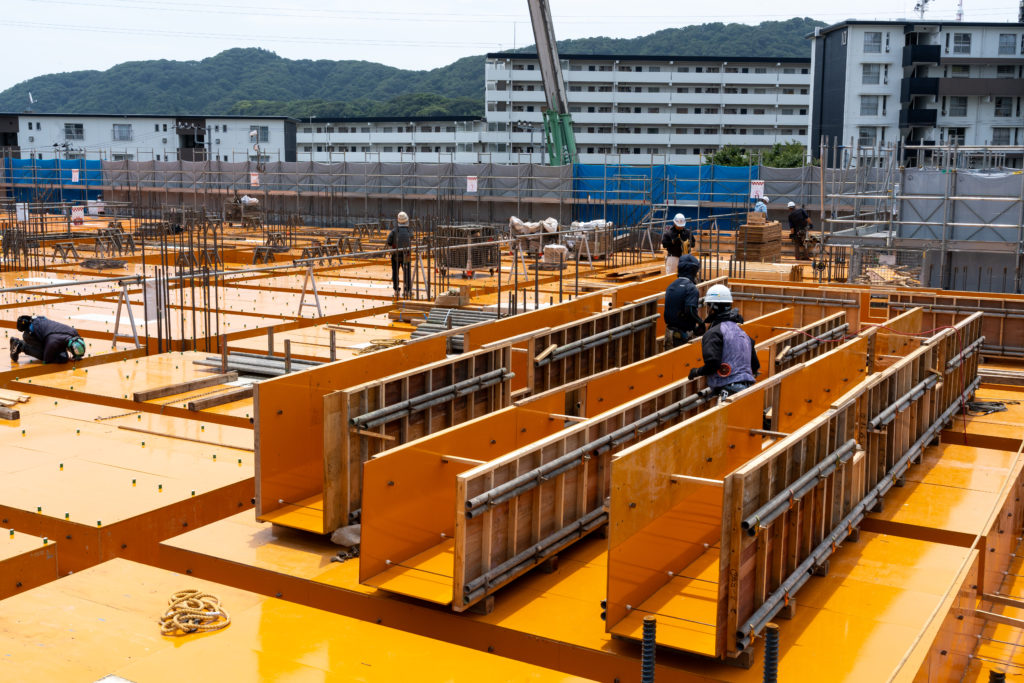 木材や金属などの材料を使用して、建築設計に基づいて適切な形状や寸法の型枠を制作します。建物における非常に重要な工程になりますので、機械化が行われません。型枠大工が人の手で設置を行なっており、非常に技術力が求められる誇り高い仕事になります。